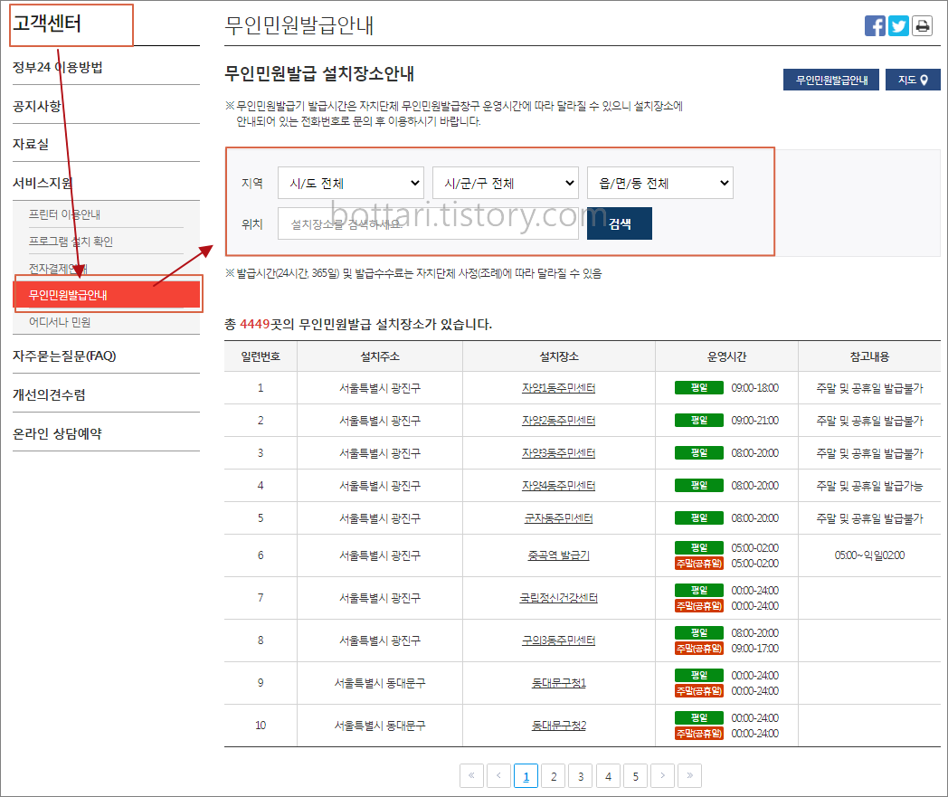 혹은 외부에 있어 이용하기 어려운 경우도 발생할 수 있습니다. 이런 경우 가까운 곳에 주민센터가 있다면 방문발급하면 간단하지만 굳이 주민센터를 방문하지 않아도 무인발급기 위치를 확인한 뒤 빠른 업무처리가 가능합니다.