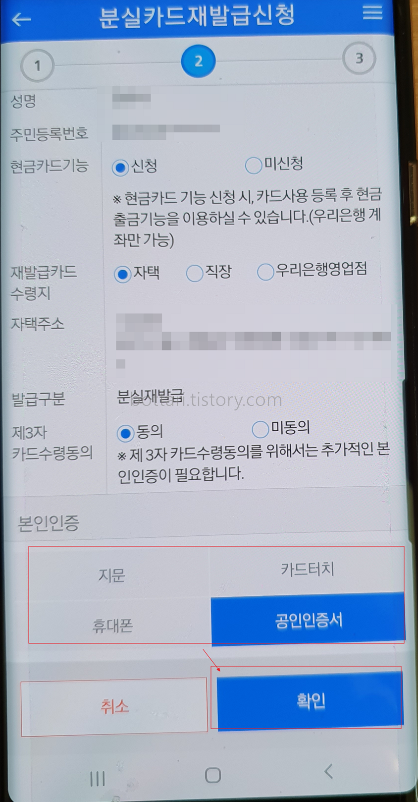 스마트앱을 이용해 분실재발급 신청하기