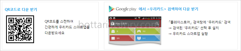 Play 스토어 > 우리카드 검색 > 앱 선택 후 설치