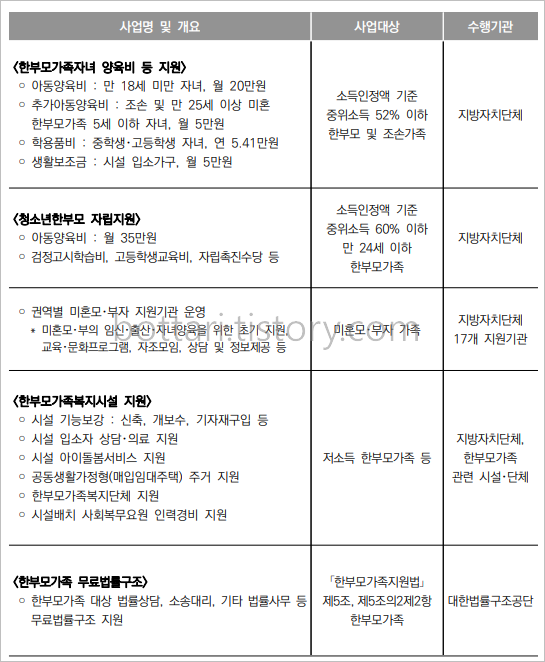 한부모가족지원사업 주요내용/한부모가족지원대책/한부모가정 양육비 지원