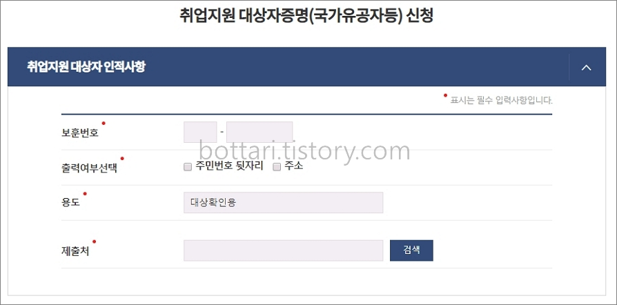 취업지원대상자 증명서 발급은 가까운 보훈과 또는 주민센터에서 가능합니다.