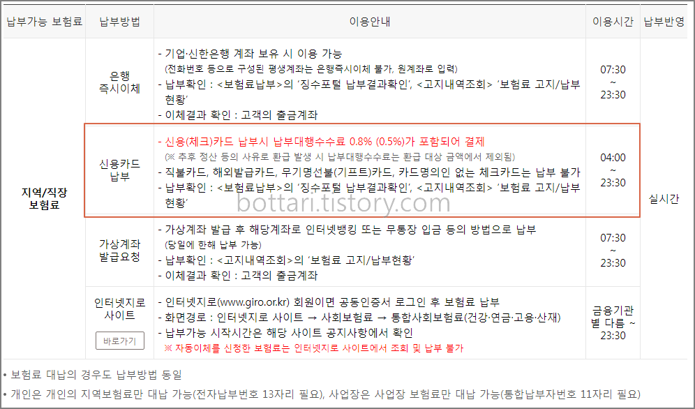 의료보험 카드납부, 국민연금 등 납부방법