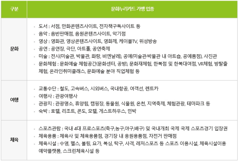 국내여행, 문화예술 향유, 체육활동 시 사용할 수 있습니다. 반드시 문화누리카드 가맹점으로 등록된 온, 오프라인 상점 (전국 25,000여개)에서 사용해야합니다.