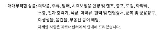 티몬 입점 시 전자상거래법상 온라인거래가 가능한 모든 상품의 판매가 가능하나 매매부적합 상품은 판매할 수 없습니다.
