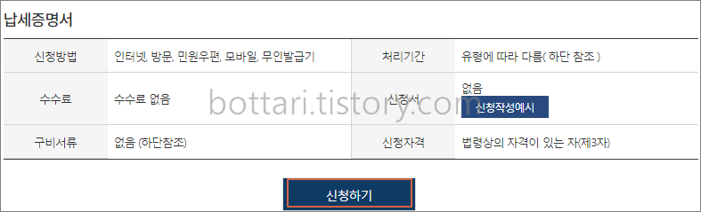 납세증명서는 방문신청도 가능하지만 방문하지 않고도 인터넷으로 발급처리 가능합니다. 다음 내용을 참고하시기 바랍니다.