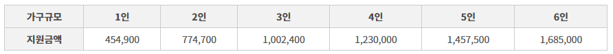 - 가구 구성원이 7인 이상인 경우 1인 증가시마다 227,500원 추가