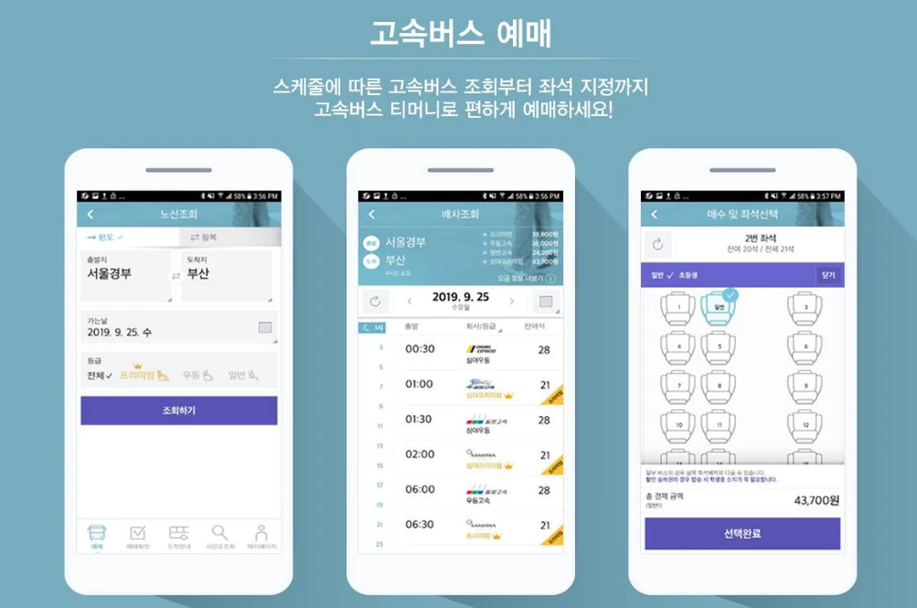 고속버스 예매 및 시외버스 예약 방법 (모바일 어플 이용방법)