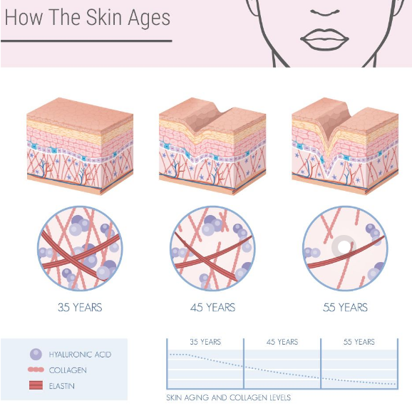이러한 콜라겐이 피부미용에 있어 주목을 받는 것은 그리 새로운 사실이 아닙니다. 피부 진피를 구성하는 주요한 성분으로 피부 건조중량의 75%를 차지하고 있으며 피부 탄력을 결정하는 장력을 제공하는 역할을 하고 있어 피부가 노화될 수록 피부내 콜라겐은 감소하고 결과적으로 피부두께는 얇아지는 현상을 보입니다. 성인이 되면 매년 1%씩 감소한다고 하니 주름을 막고 탄력을 유지하기 위해 콜라겐 층을 보호하고 유지하는 일이 중요하게 여겨져 왔습니다.