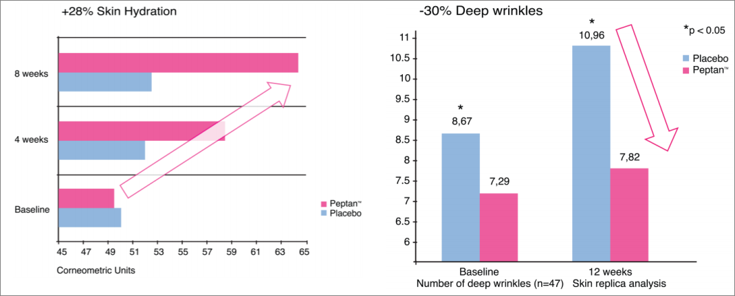 이에 따라 먹는 콜라겐까지 등장하였는데요. 피부장벽을 통과하지 못하는 저분자 콜라겐을 먹어서 흡수율을 높이고자 하였습니다. 한 연구결과에 따르면 69명의 35~39세 여성을 세그룹으로 나누어 대조실험한 결과 콜라겐 섭취한 실험군에서 유의미한 탄력도 증가가 관찰되었습니다. 이처럼 섭취 결과 탄력도 및 주릅개선 등에 효과를 증명한 논문자료는 매우 많이 발표되었습니다.
