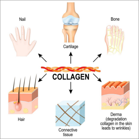 콜라겐은 우리 몸속에서 세포와 세포를 잇는 경단백질로 교원질이라고 합니다. 우리을 구성하는 단백질 중 30%를 차지하고 있으니 중요한 성분임에는 틀림이 없습니다. 뼈와 연골, 이, 힘줄, 피부 등을 구성하며 물고기의 비늘에도 많이 분포하고 있습니다.