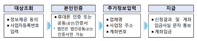 신속지급 대상자 (11.24 이후 집합금지, 영업제한대상 및 기존 새희망자금 일반업종 기수급자)는 신청 홈페이지에서 신청정보 입력 및 대표자인증을 통해 신청할 수 있습니다.