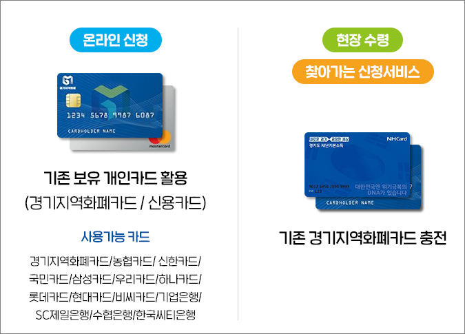 이용가능 카드사 : 경기지역화폐, 국민, 기업, 삼성, 롯데, 수협, 우리, 신한, 현대, 하나, BC, SC제일카드 등 시중 12개 신용카드사