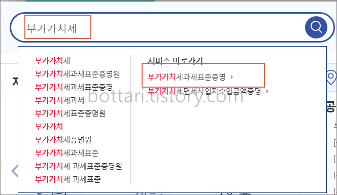 부가가치세과세표준증명 인터넷 발급