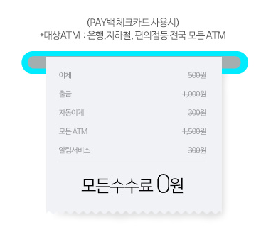 계좌연결을 통해 네이버페이, 카카오페이, 토스, 페이코 등 간편결제앱의 충전, 송금, 결제를 바로 이용할 수 있습니다. 또한 스마트출금 서비스를 이용하면 ATM에서 체크카드 없이 휴대폰으로 현금을 출금할 수 있습니다. 이때에도 수수료는 무료입니다. 스마트출금 서비스는 GS25편의점 ATM, 세븐일레븐이나 롯데마트 등 제휴된 롯데유통점 피에스넷기기에서 이용가능합니다.
