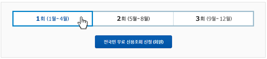 □ 나이스지키미에서는 연3회 4개월 단위로 신용등급 무료조회가 가능합니다. 해당기간내에 단 한번만 조회할 수 있습니다.